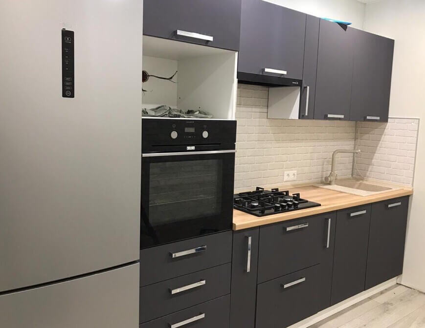 Решили обновить кухню в квартире родителей. Заказали в модном стиле хай-тек – смотрится эффектно, но при этом тепло и по-домашнему. Темный цвет однозначно добавил стиля. Все изготовили отлично – ящики выдвигаются очень плавно, ручки удобные, не хрупкие. Поверхности гарнитура матовые, не бликуют и не видно даже малейших разводов после уборки. Доставили в оговоренный срок, монтаж прошел спокойно и без грязи. Кухня получилась уютной и удобной. Могу рекомендовать, особенно для средних помещений, много места не съедает. Эта кухня на заказ самая идеальная за весь наш опыт!