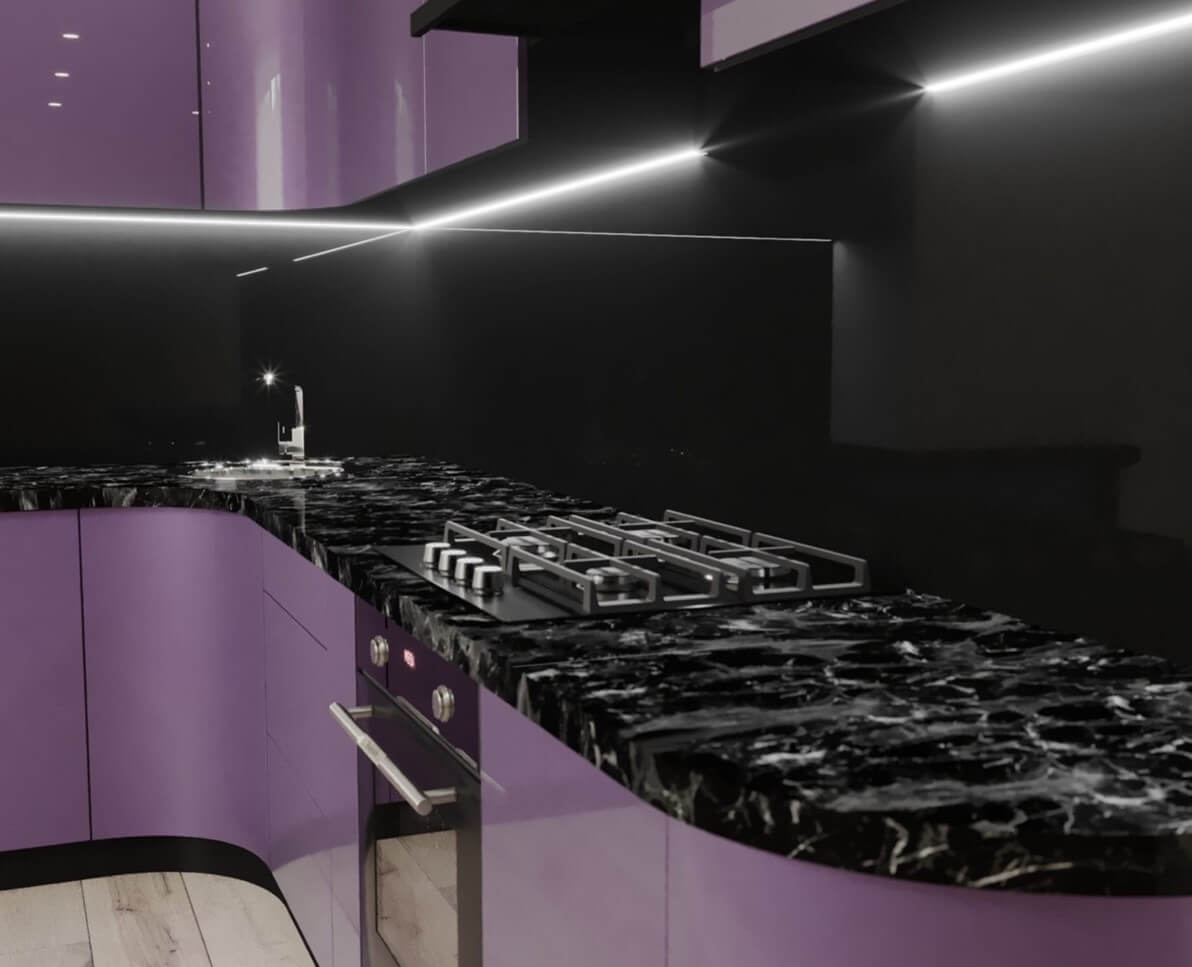 Вот все привыкли, что кухня должна быть светлая, а нашей семье хотелось необычности в дизайне. Как здорово, что ваши дизайнеры наши такой модный вариант для нас! Сначала я не поверила глазам - глянцевый фиолетовый, такого не видела в жизнь! Но потом поняла, что это то что мы и искали! Очень понравился сервис и результат работы мебельщиков. Собирали у нас, поставили без нареканий. Огромное спасибо!!!