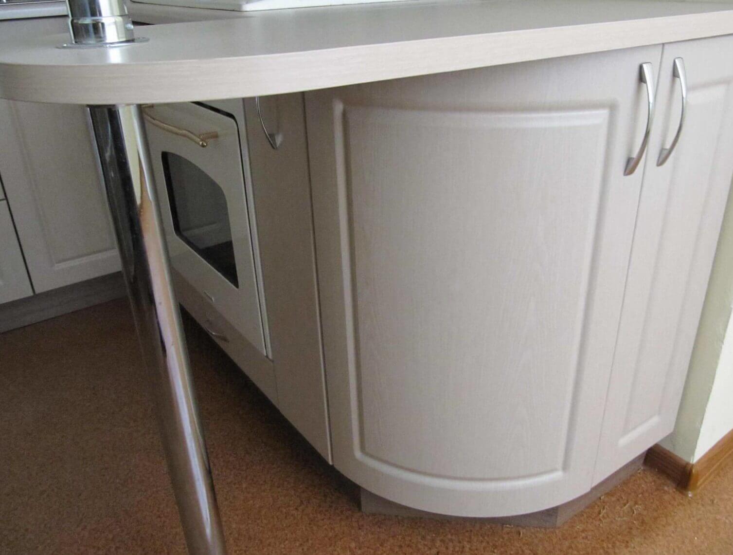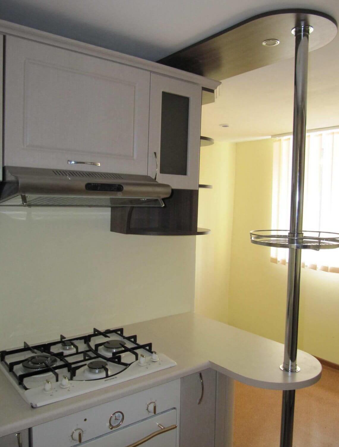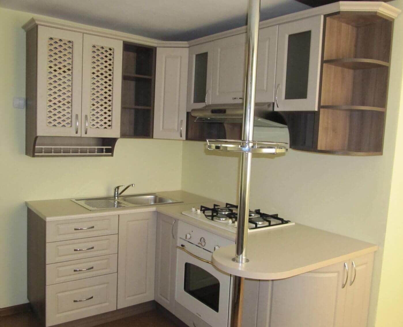 Комфортная и небольшая, поместилась на двух квадратных метрах, хотя изначально было предположение, что это невозможно сделать. Выглядит прилично и даже отлично, несколько на скромный бюджет. Сделана под индивидуальный размер и с учетом желаний жены - по фасадам, барной стойке и удобному расположению плиты. Довольны результатом и выражаем благодарность мебельной компании.