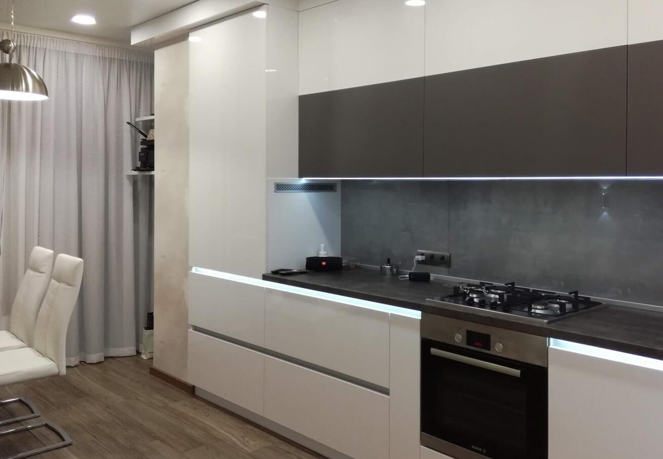 Кухню заказывали в квартиру. Помещение для кухни просторное, сейчас модные планировки - кухни-столовые, вот у нас как раз такая. Мы советовались с дизайнером, как разместить гарнитур, чтобы и стол обеденный, и телевизор, может даже диванчик небольшой влез в одной комнате. Посоветовали прямую кухню встроенного типа. Это сейчас на пике трендов и кстати, очень удобно по использованию. Дизайн просто современный шик!. Довольна как слон, приглашаю постоянно гостей, чтоб смотрели и завидовали!